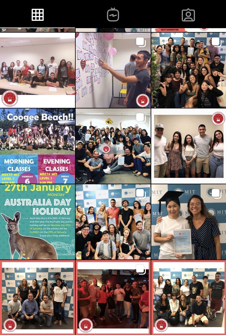 Instagram投稿アシスタント MW ライター・フォトグラファー求職中 OVERVIEW 語学学校の公式Instagram投稿のアシスタントを行いました。 YEAR 2020 それまで使用していた学校のイメージカラーを使ったフレームを思い切って廃止。撮影者の異なる写真を扱うことがほとんどなので、統一感を出すための加工フィルターを作成。スタッフ誰でも加工ができるようにCanvaを使用し、そのマニュアルも作成した。@mitinstitute