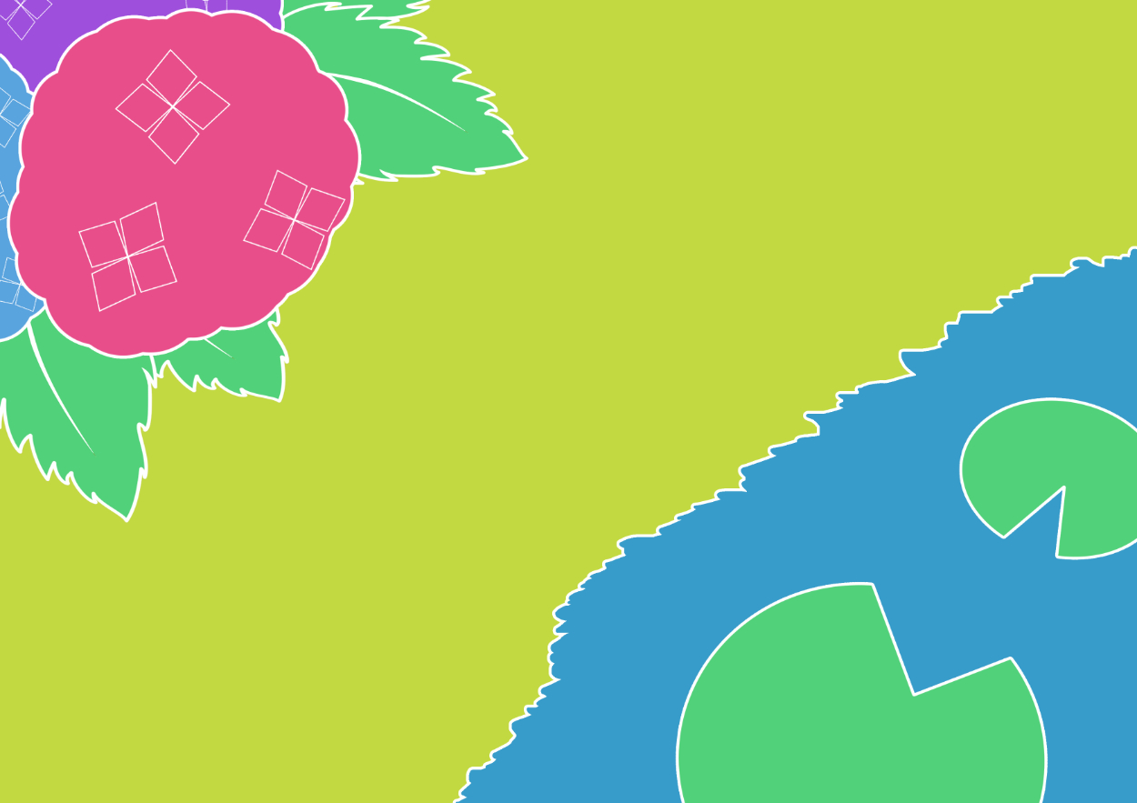 指定で「若草色をメインに使ってほしい」とのことだったので、あまり色味を損ねないようにしつつ、梅雨の雰囲気を出したいと思いました。どういう構図にするか結構悩みました。