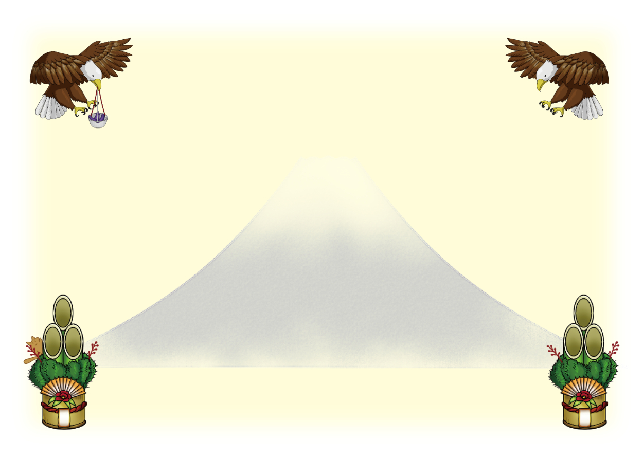 おめでたい感じを出すために一富士二鷹三茄子びを取り入れてみました。じつはどっかに謎の生物が隠れてます。
