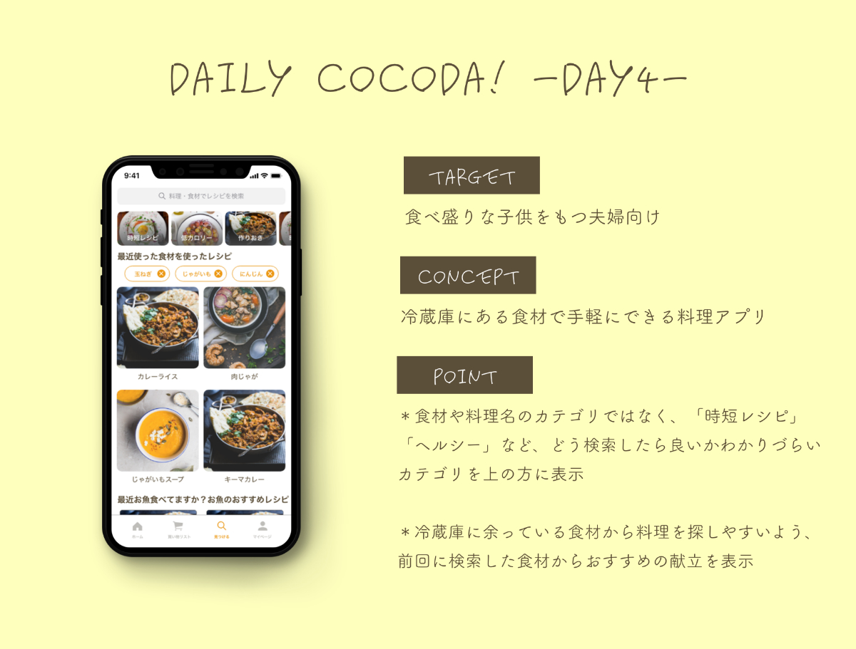 Daily Cocoda! Day4 「料理アプリの検索画面」