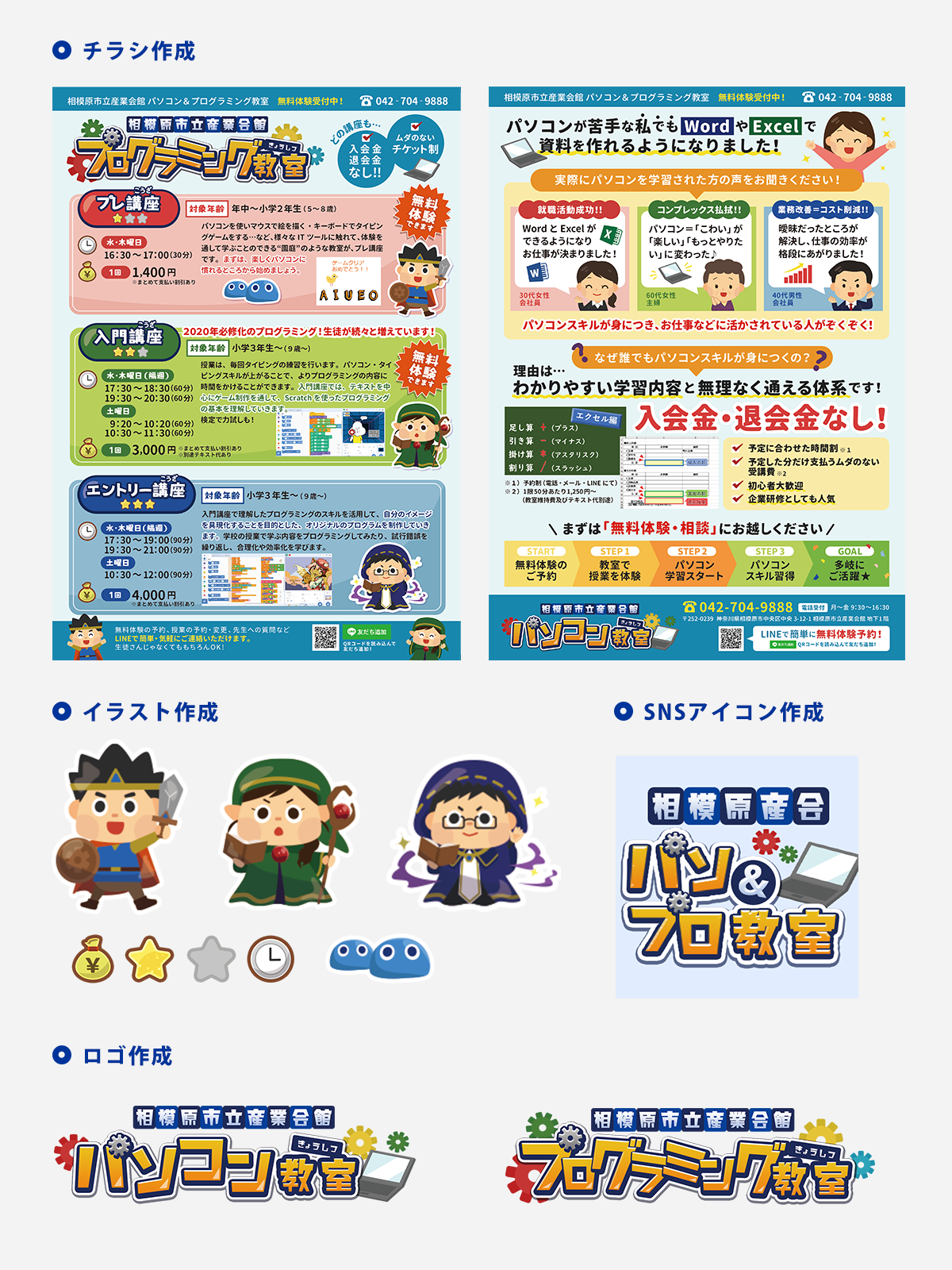 担当:チラシデザイン、イラスト作成、(印刷会社への納品~発注まで)