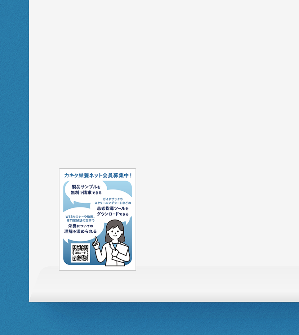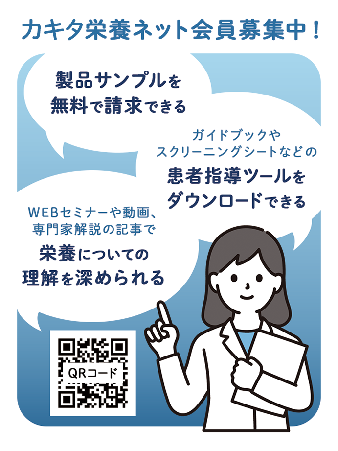 栄養士や介護士向けサービスのネット会員を募集するため、封筒に貼付するステッカーです。会員になることのメリットをわかりやすく記載しています。視線を上から下に導き、最下部に二次元コードを配置することで会員登録ページへ誘導しています。
