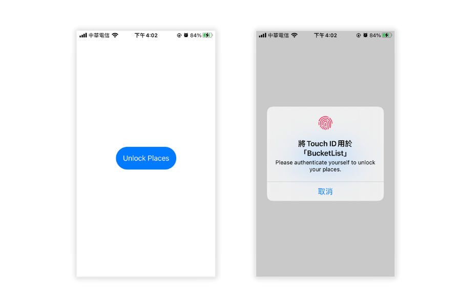 - User need to use biometric authenication (TouchID/FaceID) to unlock app.