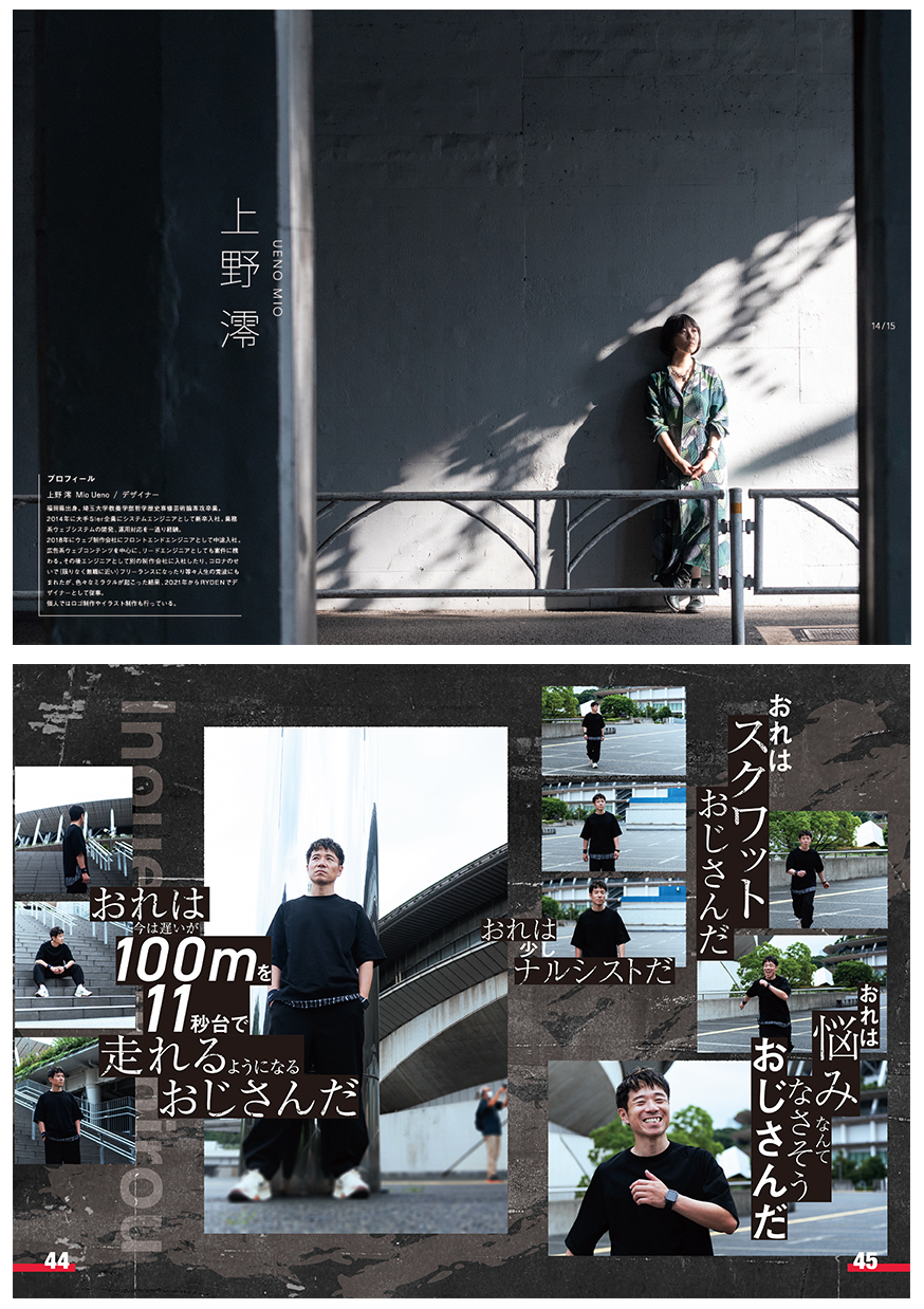 「ライデンの個性や強みを作っているのは、今会社にいるライデンメンバー」というコンセプトのもと、これまでの実績はもちろん、ライデンのメンバーにフォーカスした構成で雑誌を制作。それぞれの個性に合わせて、場所や時間帯を個別に撮影し、デザインもそれぞれに合わせてあえてバラバラの構成にしました。
