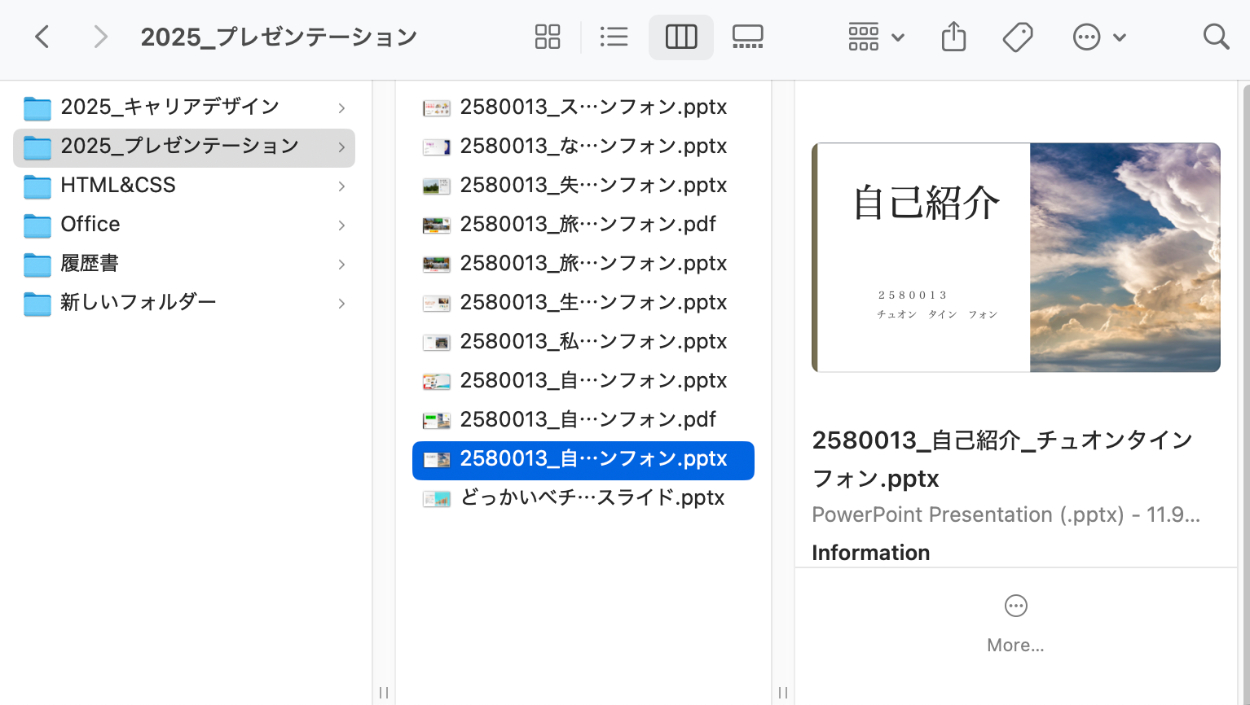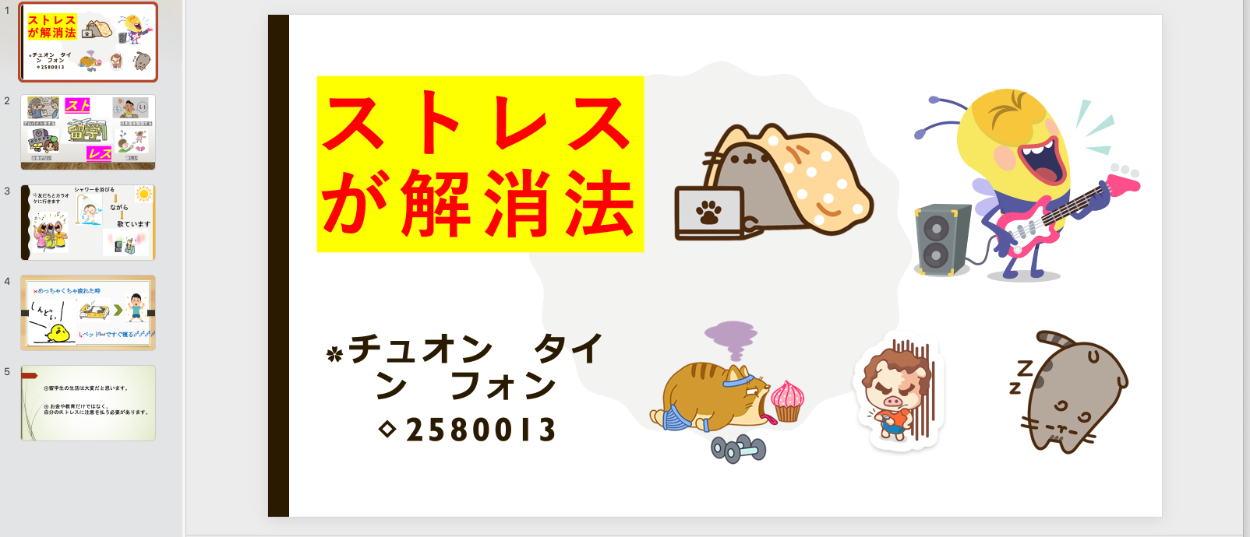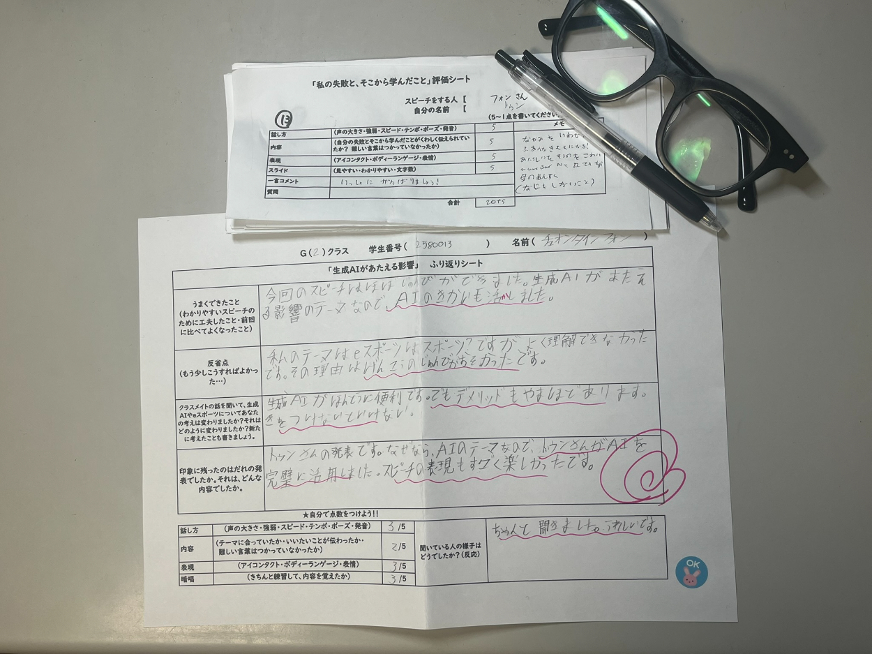 日本語学校にいた頃は、日本語の勉強ばかりでした。でも、今の新しい学校に入ってからは、新しいことにも挑戦しています。特に「プレゼンテーション」の授業では、自分の考えを伝える難しさと楽しさを学んでいます。