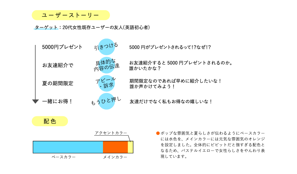 ターゲット:英語初心者の20代女性・趣味で英会話を学びたいと考えている方