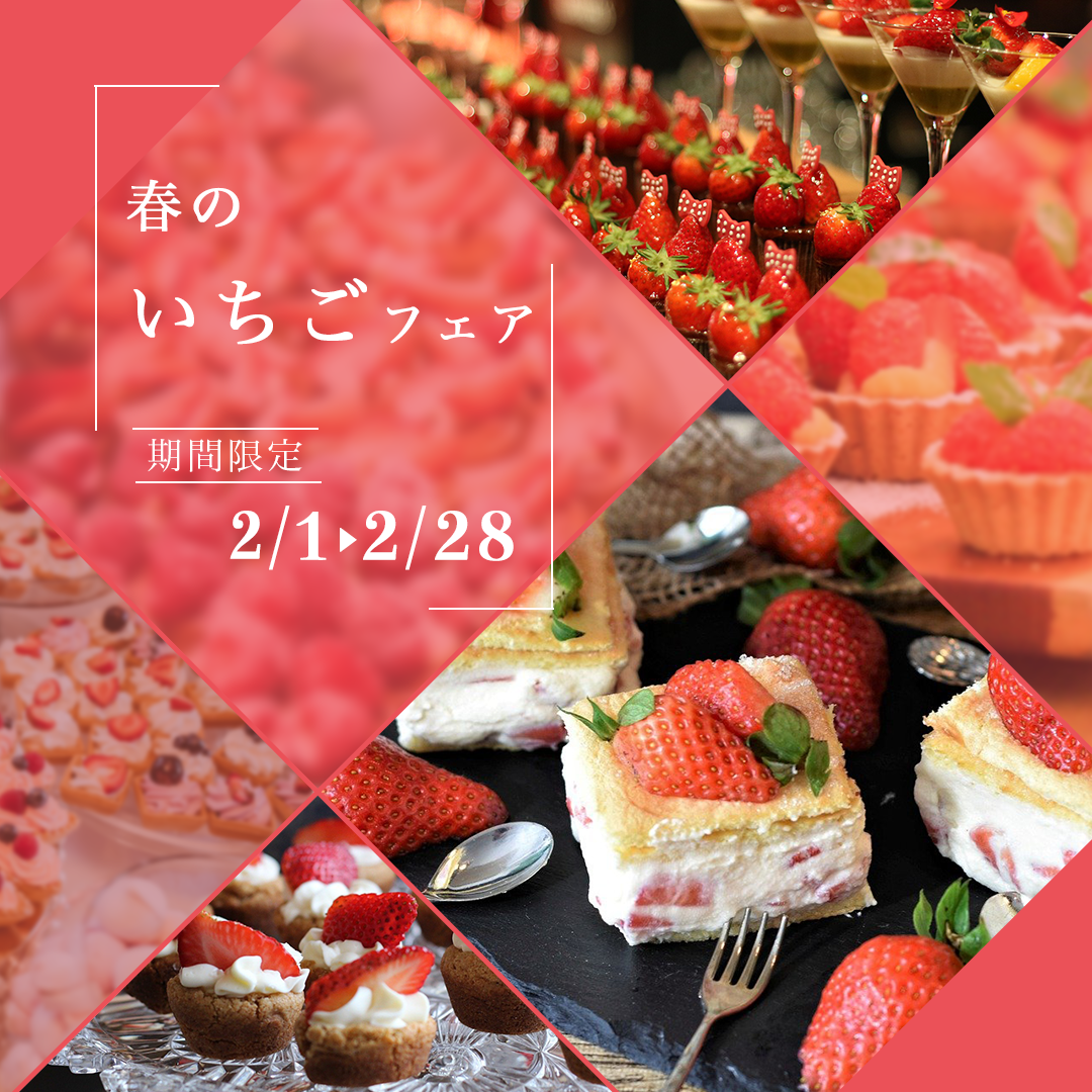 春のいちごフェアということで全体をピンクで統一し、一目で印象付けるバナーを作成した。写真を多く使うことで、数多くのデザートが並ぶ様子が想像できるようにした。
