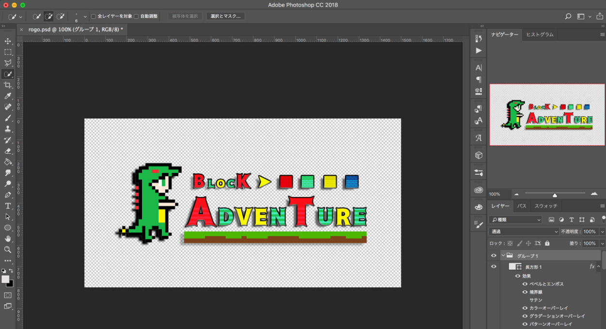 グラフィック面は全てPhotoshopで作成しました。キャラクターやボタン、ロゴや背景などを作成しました。