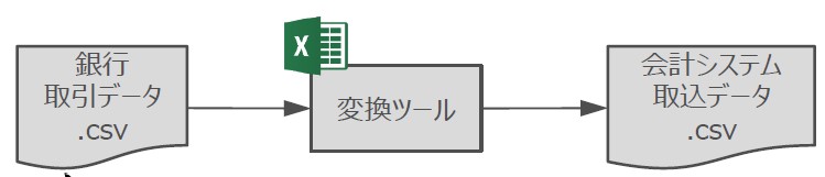 そこで、未使用だった銀行取引データを普段から使い慣れているエクセルで会計システムに取り込めるような形式に変換するツールを作成することで解決可能と判断しました。