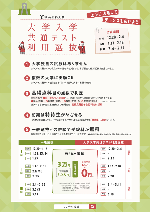 高校生に向けて入試「大学入学共通テスト」を告知するA4チラシ。