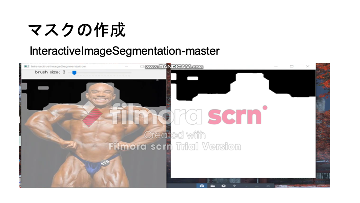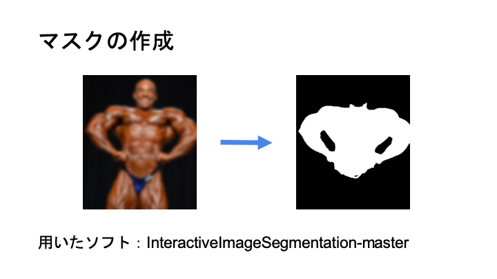 作業の途中から,セグメンテーション(白抜き)するアプリケーションをGitHubで見つけて効率化を行ったものの発表までの時間が足りず,結果,一般人データは48枚分,マッチョデータは148枚分しか作ることができませんでした.