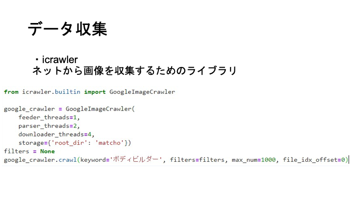 データはGoogle等からスクレイピングする形で収集しました.Pythonのライブラリが存在しており,たったこれだけ書くだけで良いなんて凄い楽ちんでした.