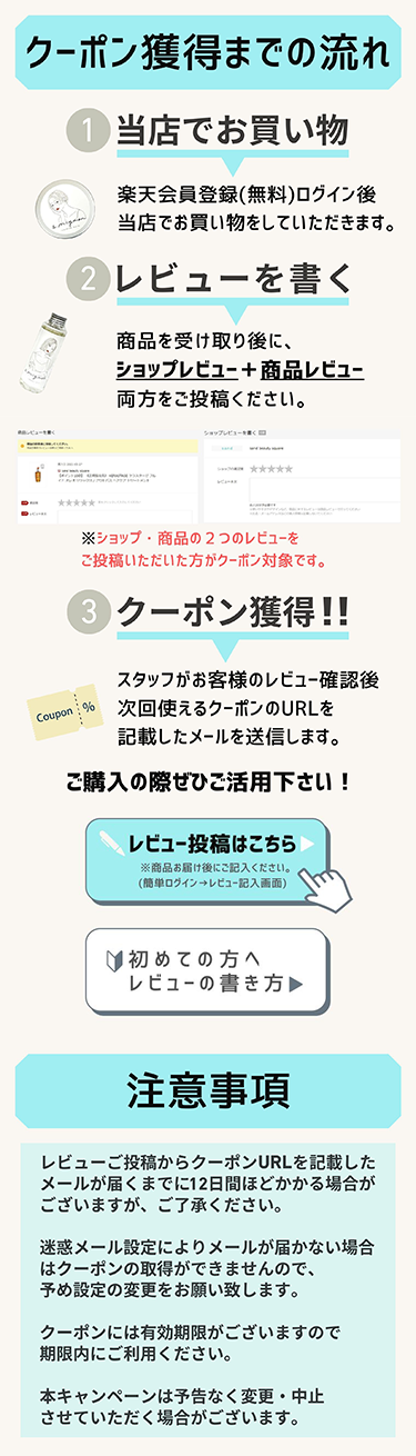 合同会社S-SPIN様が運営するECショップに掲載するレビュークーポンの説明ページを制作しました。
