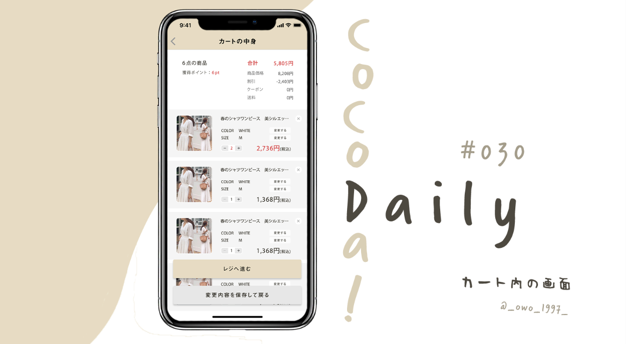 ①の場合、まず最初に知りたい情報は「合計金額」だと思ったので、最上部に配置した。金額の位置は固定されていて、商品一覧はスクロールできるようになっている。