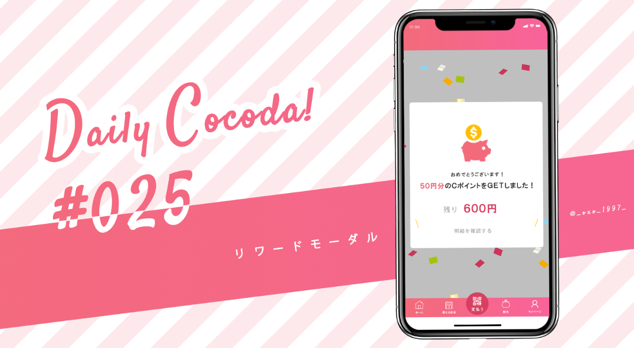 ・始めて利用したあとのモーダルということだったので、「祝福している雰囲気」「『ポイントGET』などのお得感」「あといくら使えるのか」というところが重要になってくると思い、上記のデザインにしてみた。
