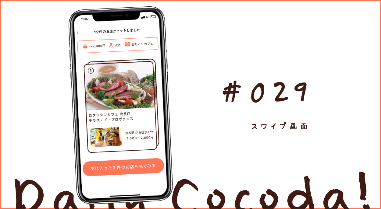 20代女性ならスワイプ操作であることがわかってくれるかなと考え、アイコンや矢印などを意図的に省いた。