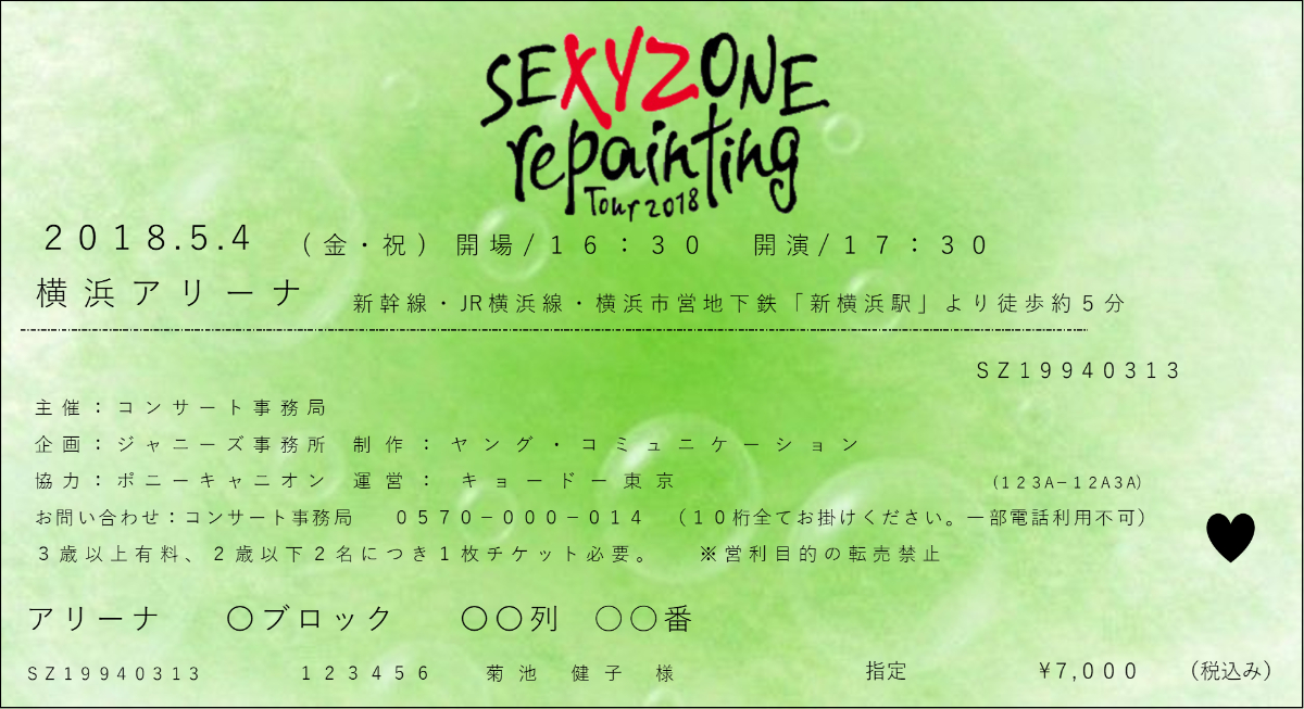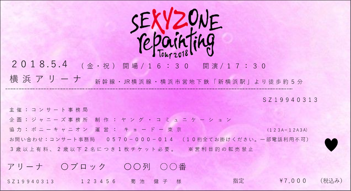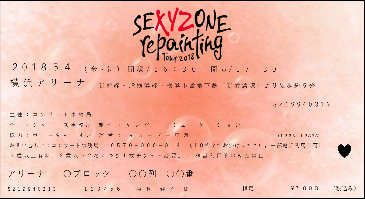 2018年のツアーからQRコードで当日発券するデジタルチケットに変更となり、紙チケットが無くなってしまった。ExcelとPowerPointを使用して再現した。