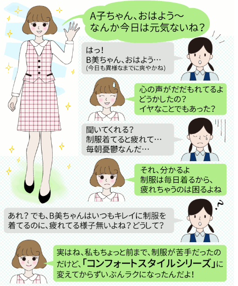 イラストとLINEをイメージした会話の展開で分かりやすいストーリーに仕立てています。ついつい読んでしまう、商品紹介の漫画を参考に考えました。