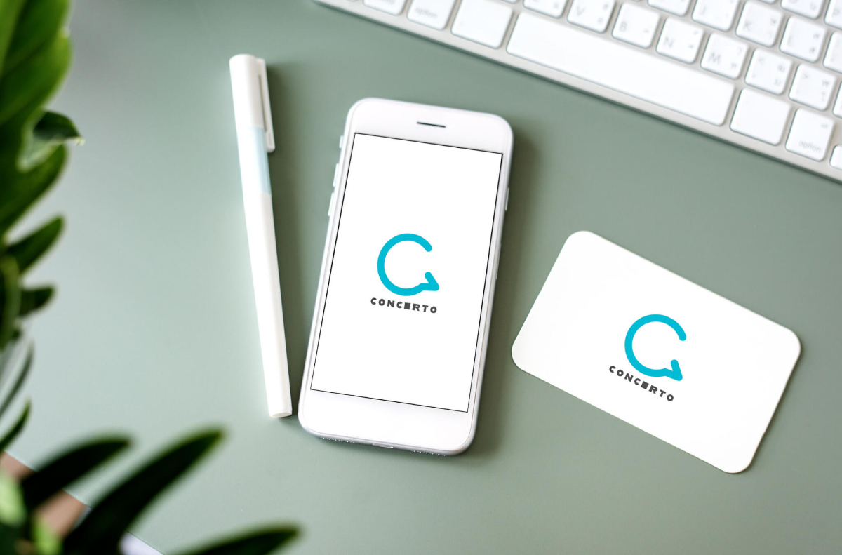 『Concerto』の『C』の字をチャット吹き出しに。『E』と『R』の字をチケットのもぎりをモチーフにする。