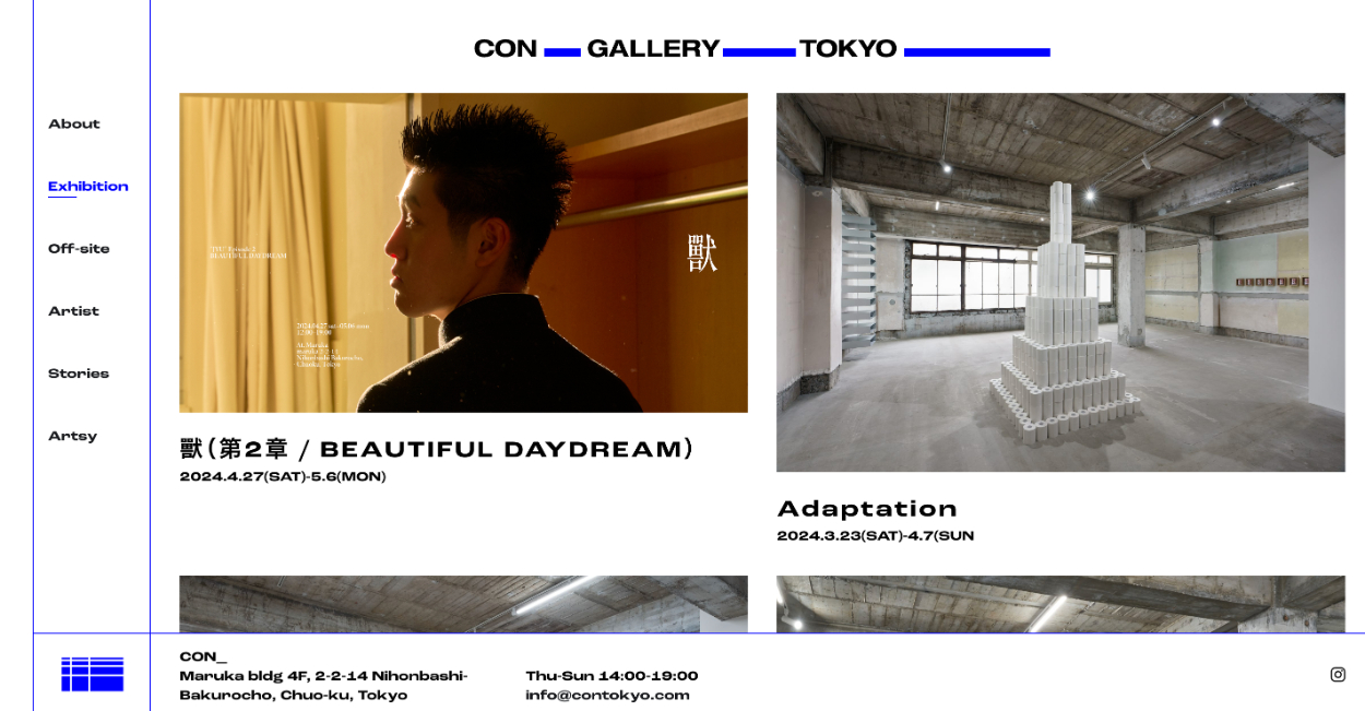 2022年4月に東京・日本橋馬喰町で開廊したCON_のオフィシャルサイトを、デザイン案に基づきテーマファイルをカスタマイズして制作しました。