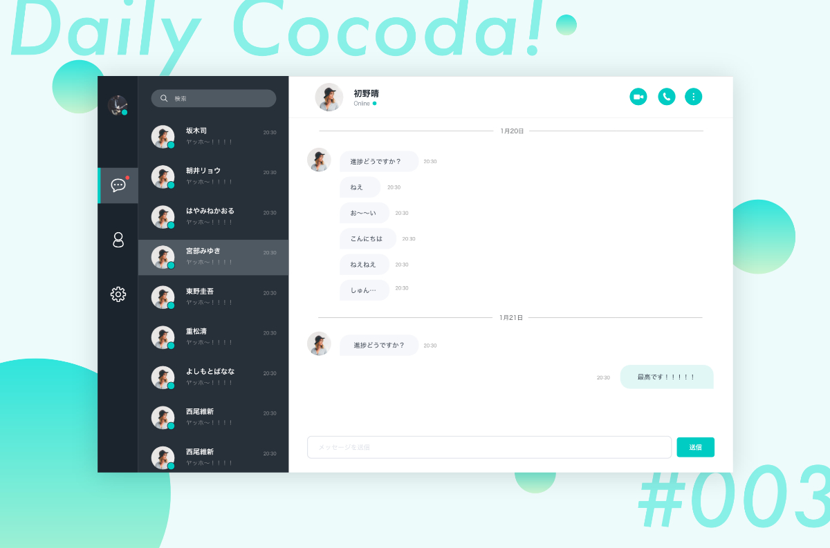 ビジネスマン向けのメッセンジャーアプリのUIを作成しました。