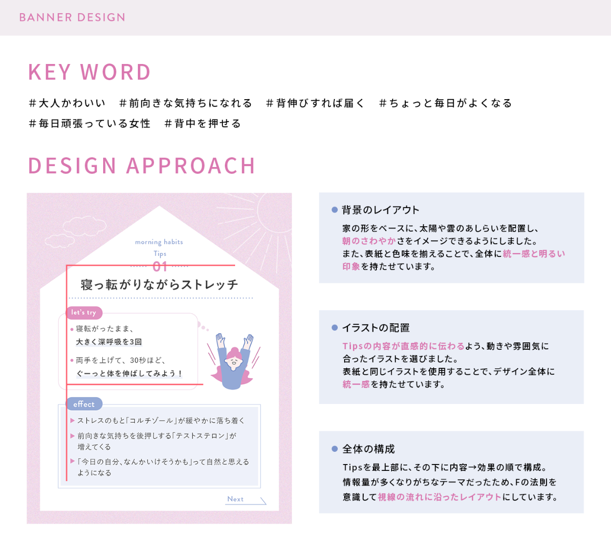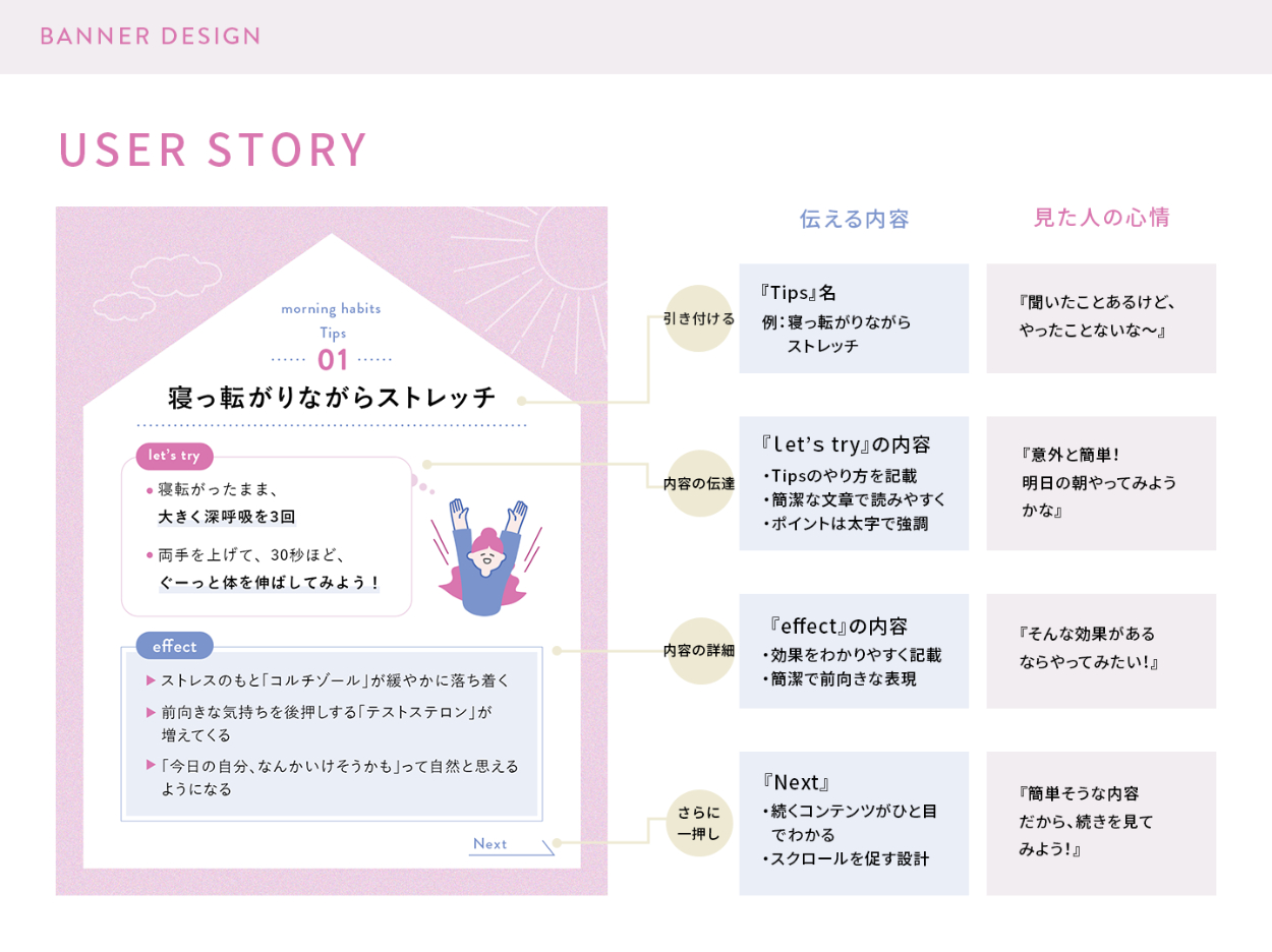 充実しているけれど、毎日バタバタと忙しく過ごしている女の子」を想定し、取り組み