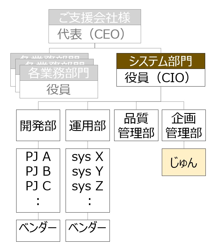 自社で情報システム部門を持ち、開発自体は外部のシステムベンダーを活用している