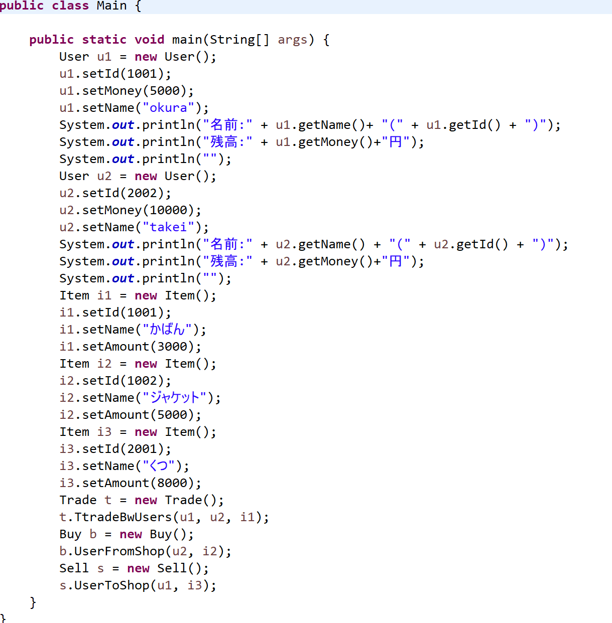 次に、ユーザー間の購入および販売アクションの作成に役立つ別のプログラムの例を示します