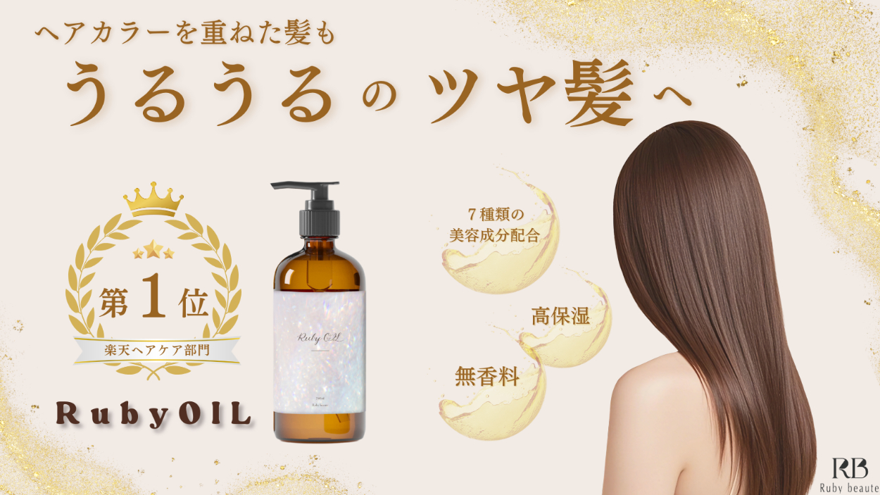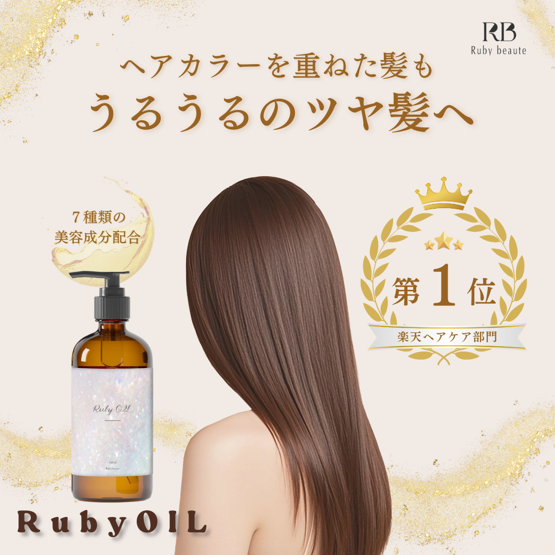 Ruby OILはヘアカラーを楽しむ方のお悩みに寄り添ったヘアオイルとして開発されました。 ヘアカラーで傷んだ髪のパサつきを、潤いのある滑らかなツヤ髪へ導きます。 保湿美容成分を7種類配合しており、傷みのケアはもちろん、カラーの色持ちも良くしてくれます。 普段の生活やリラックスタイムにも気にならない無香料。