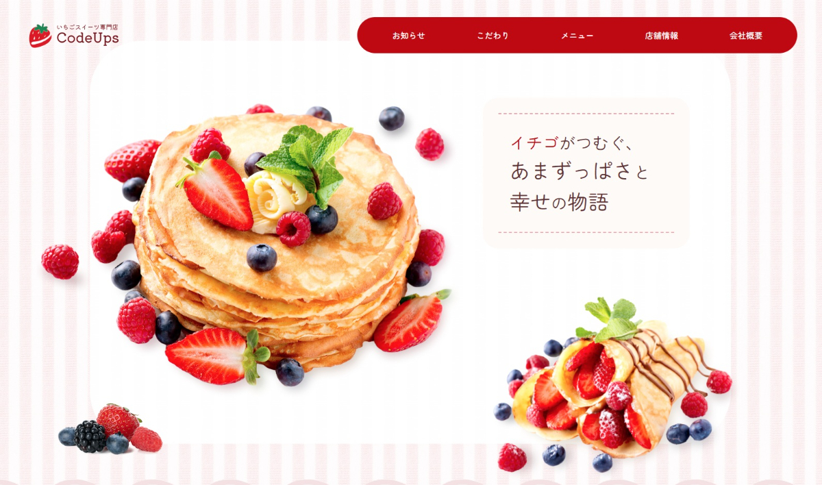 所属しているコミュニティで配布されている、サイトデザインをコーディングしました。URL:https://rnoda-studio.com/ichigo_sweets/