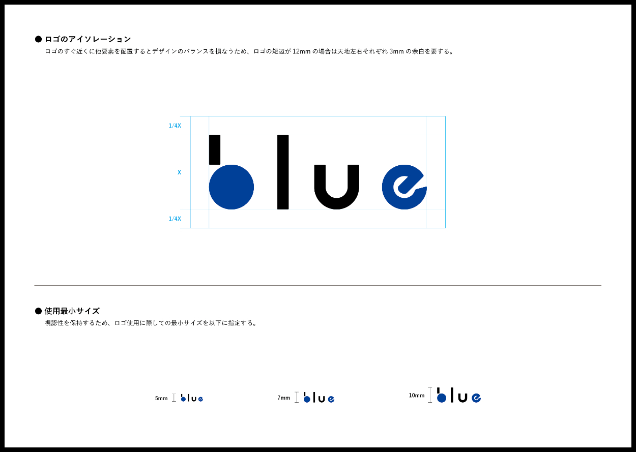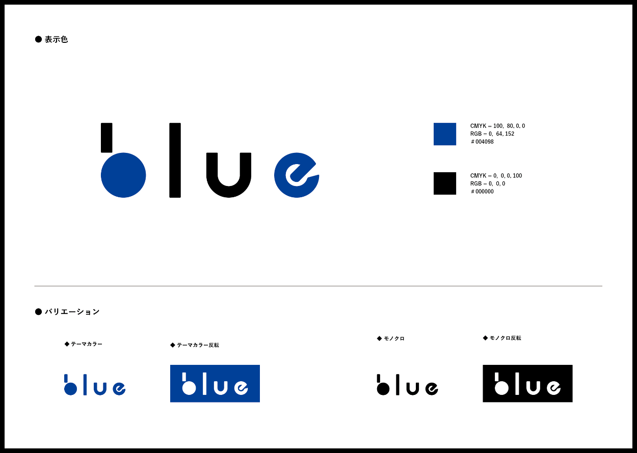 株式会社blue Corporate logo maikou designer OVERVIEW Client : 株式会社blue YEAR 2022 株式会社blueのコーポレートロゴ及びレギュレーションを制作いたしました。