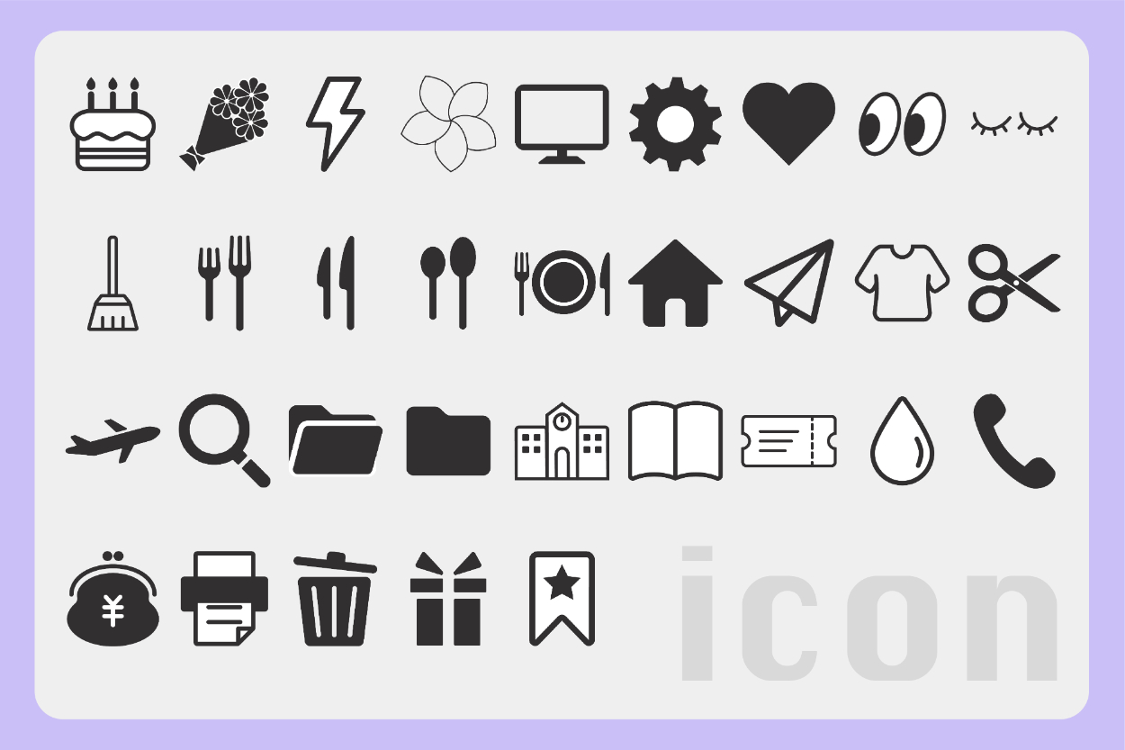 自分が今後スライド作りや制作活動において必要になりそうなものや好きなもののアイコンを作り続けています。