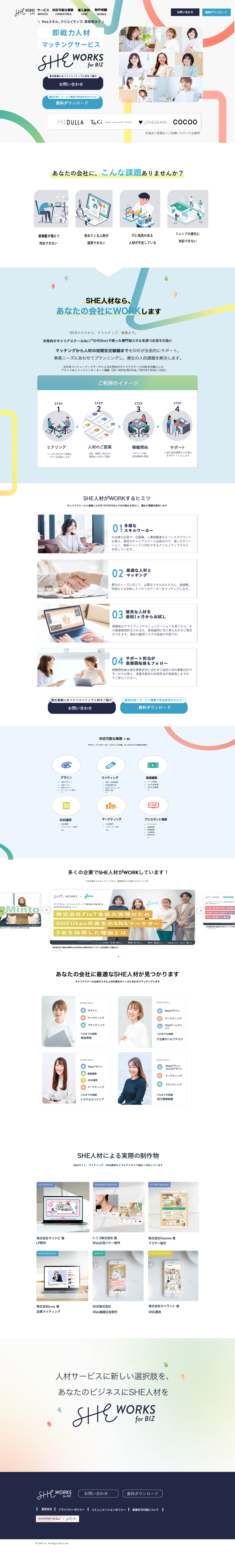 SHE WRKES(法人向け)求人サイトLPトレース