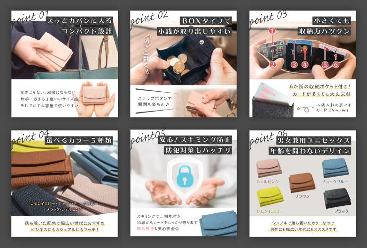 - 1枚に1つのメリットにして、詰め込みすぎない