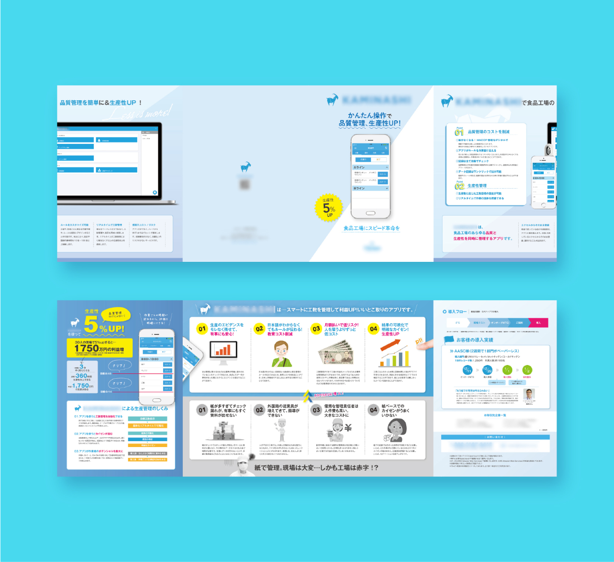 工場工程管理アプリ「PaperLess」の展示会のためのリーフレットをデザインしました。