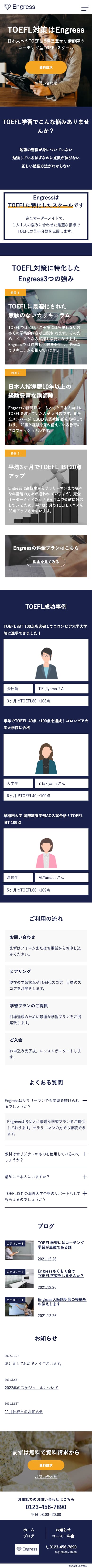 XDデザインよりコーディング→WordPress化を担当しました。 Engressという架空の英会話スクールのホームページとなっております。