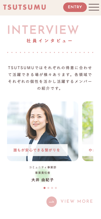 社員インタビューにはスワイパーを取り入れ、指で直感的に閲覧できる仕様に変更しています。