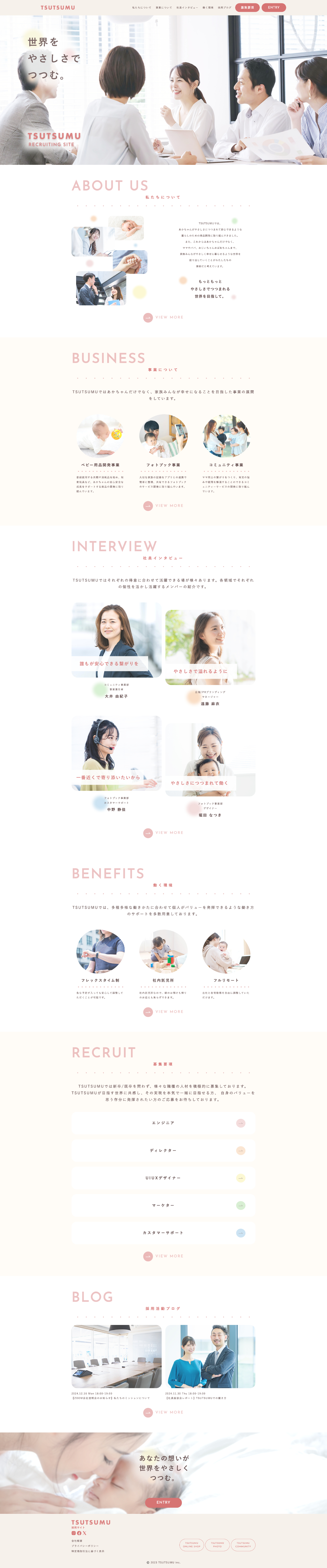 ベビー用品企業の採用ページ制作。