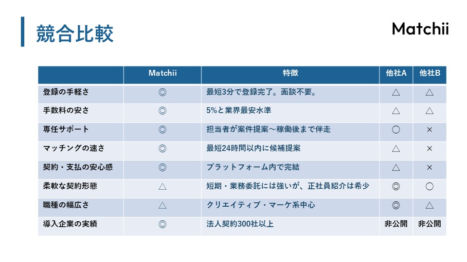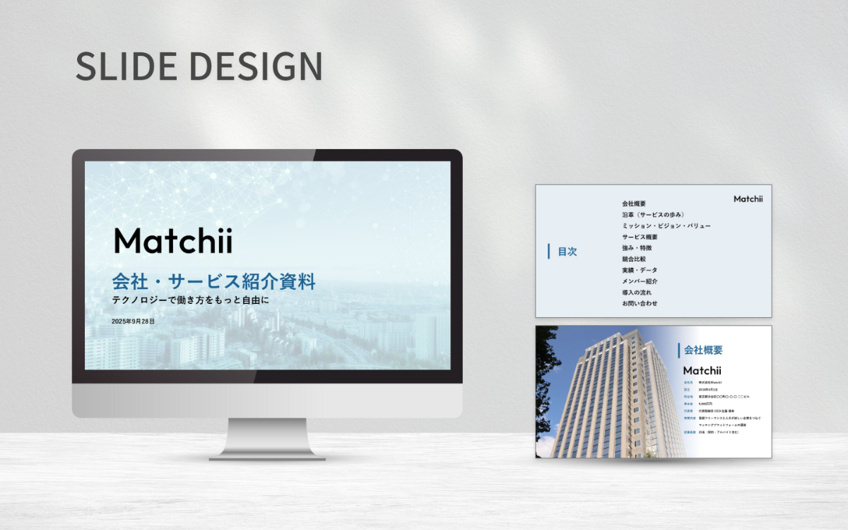 自分の勤めている会社以外の企業の資料なので、クライアントが何を・どのくらいの温度感で伝えたいのかを理解すること自体が難しく、それを資料に落とし込み、表現することを意識しました。