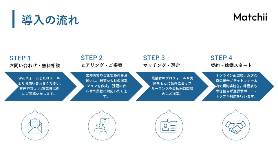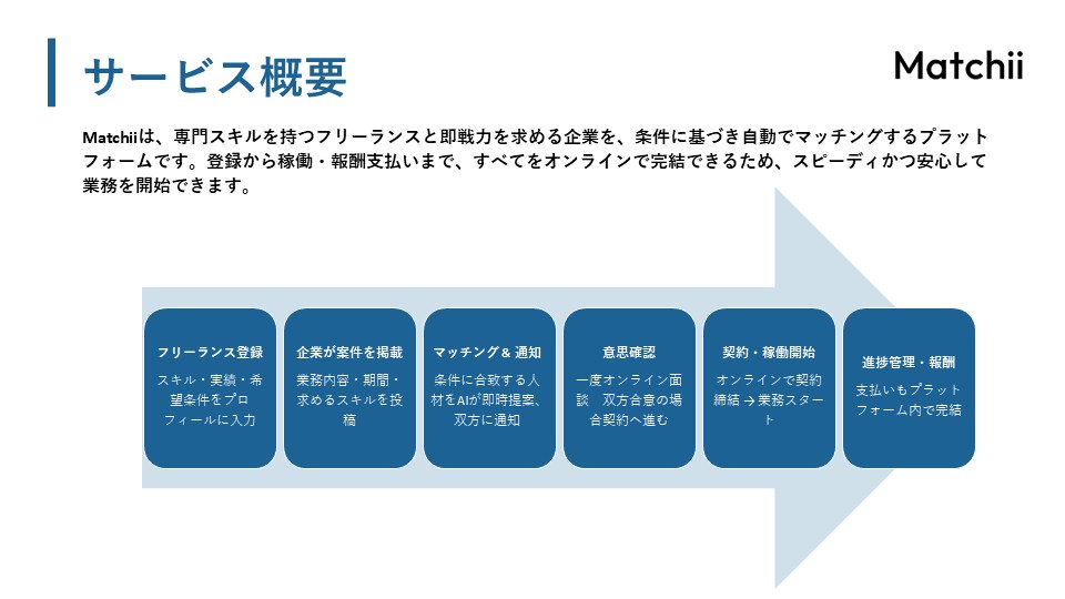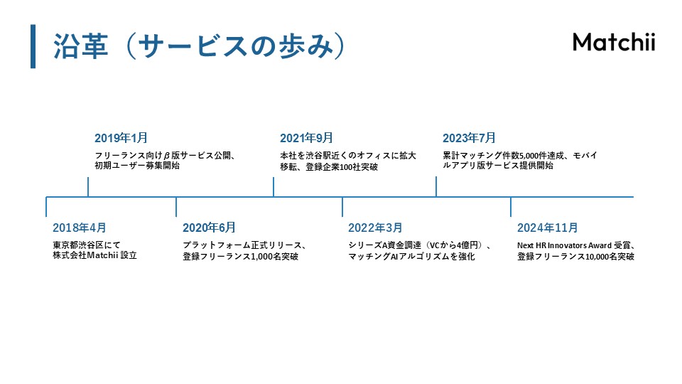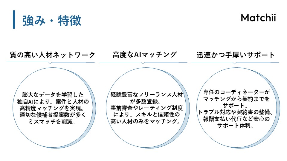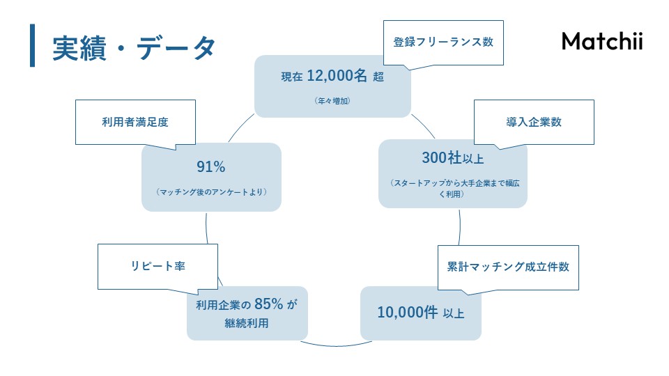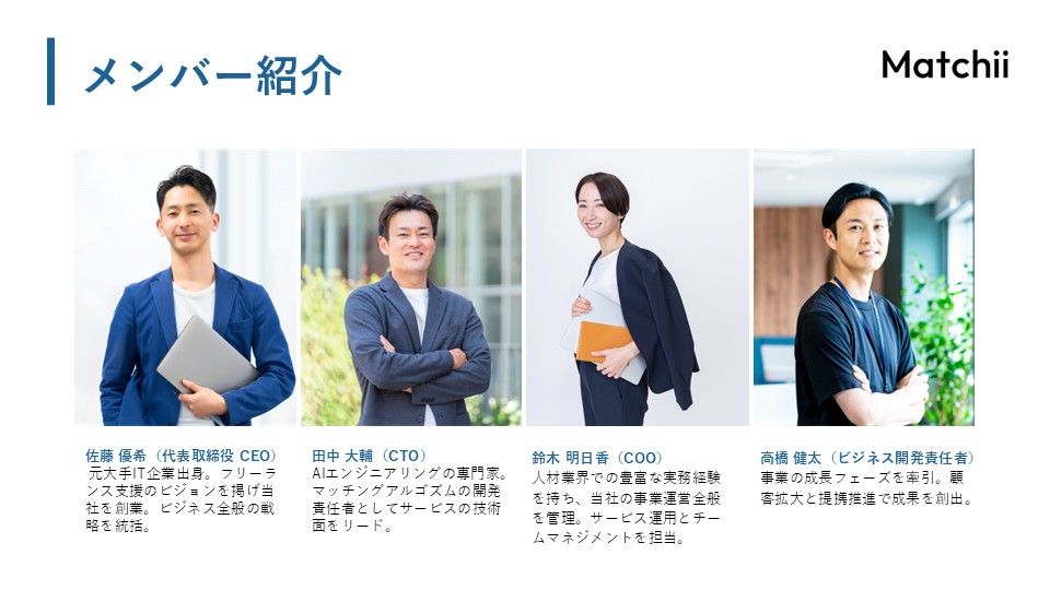 都内にオフィスを構える、フリーランス人材と企業をつなぐマッチングプラットフォームを運営するスタートアップ。企業の課題や文化に合った”相性のよいマッチング”を追求しているのが最大の特長。マッチングの精度を高める独自のAIアルゴリズムを活用しながら、新しい働き方のスタンダード確立を目指している。