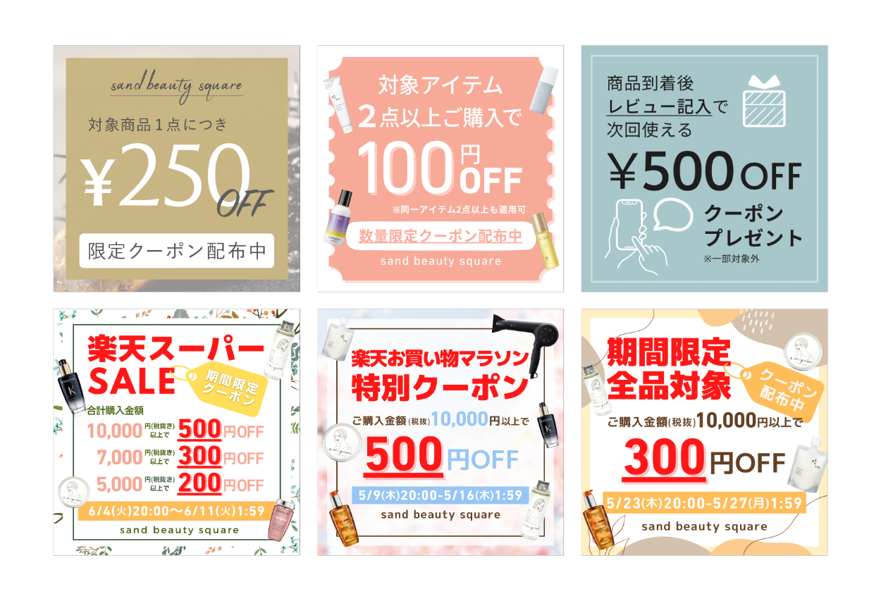 <文言>キャンペーンタイトル、期間、割引額、割引適用条件、クーポン配布中などの補足の文言
