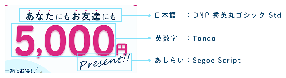 バナーに目が留まってほしいと考え、多くの人が気になりそうな『5000円プレゼント』を目立たせることにしました。