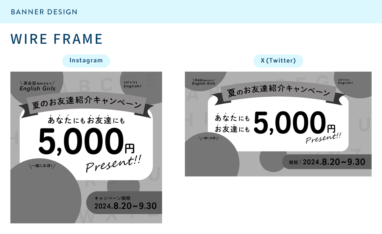 SHElikes MULTI CREATOR COURSE にて実際の案件を想定し、 英会話教室(架空)のSNS用広告バナー制作を行いました。