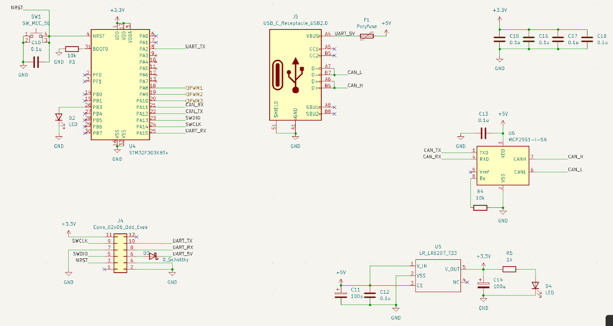 サーボモータ基板はCAN通信とUART通信を実装し、20kgトルクを出せるサーボモータを制御できる設計にしました。
