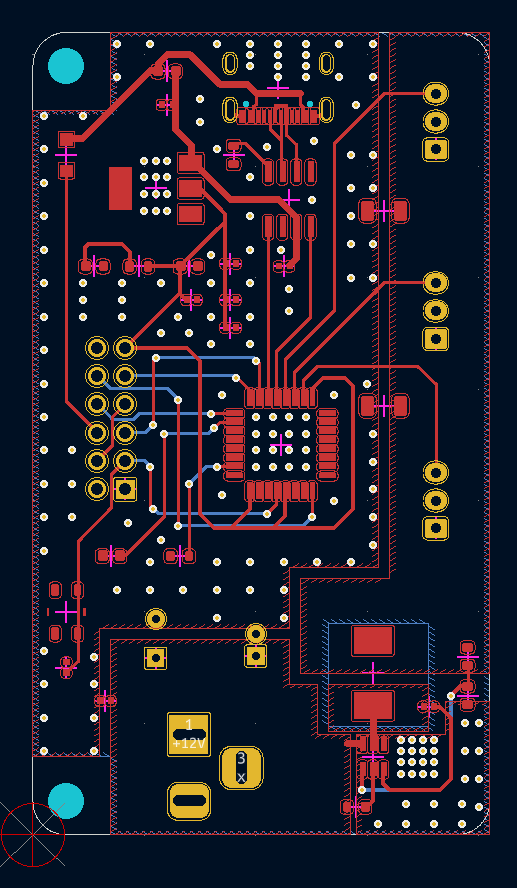 チーム内で電装を担当し、サーボモータとLEDを制御する基板をKiCADで設計し、実装しました。