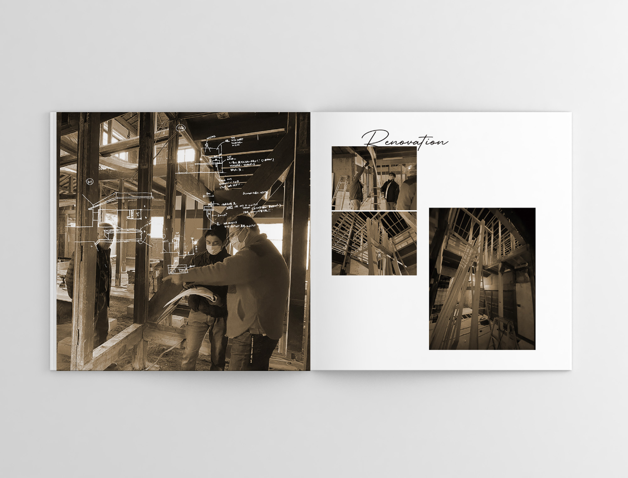 竣工アルバムデザイン_京都府の建築事務所様 溝越万莉 グラフィックデザイナー OVERVIEW ●ご依頼内容:リフォームを行ったお客様にお渡しする竣工アルバムのデザイン ●納品物:アルバムデータ ●制作期間:1週間 YEAR 2023