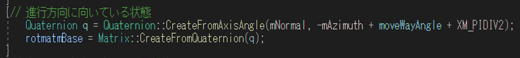 最終的には、面の法線ベクトルを元に回転行列を作った後、クォータニオンも用いて回転させるという手法で望んでいた動きになりました。
