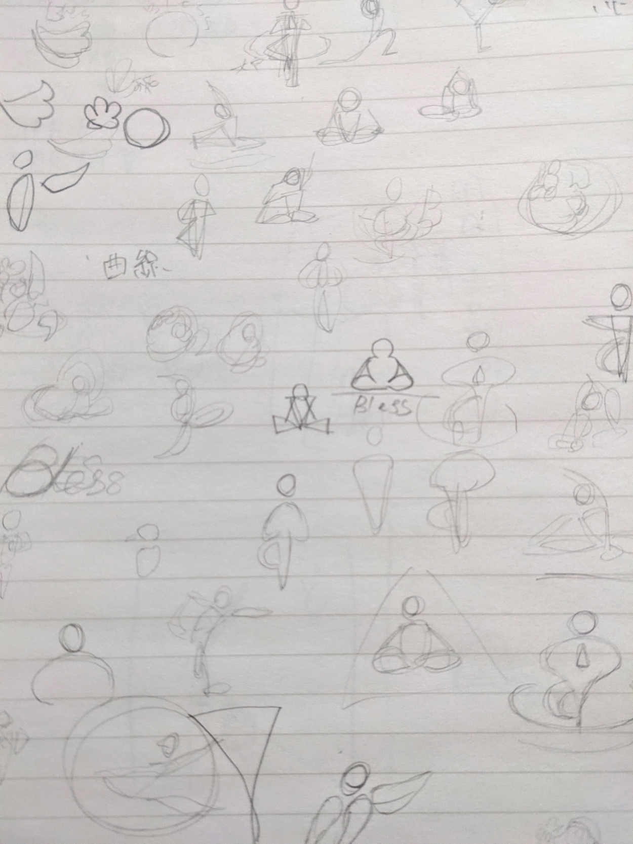 試作の段階ではヨガのいろいろなポーズを描きだし、それを簡略化することを繰り返しました。複雑なポーズが多く、単純な形に落とし込むことが難しかったです。