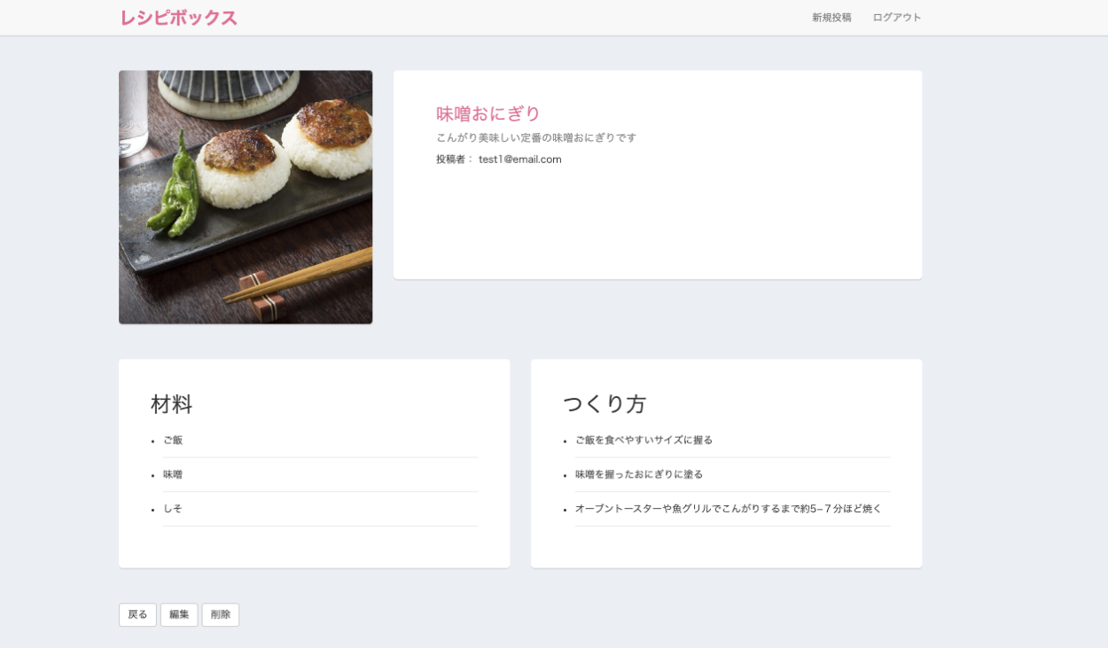 ■ レシピの詳細。ログインユーザー本人のみ、編集や削除も可能。