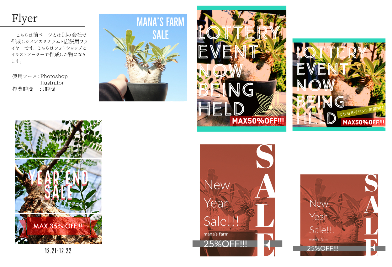 セールや夏季休業などお店のイベントを知らせるフライヤーを作りました